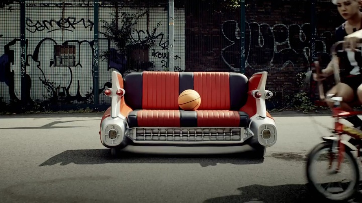Also cycling around furniture, but this time outside, is G-Dragon, leader of K-pop boyband Bigbang. Here G-Dragon rides around a sofa on a Chopper, in a video filmed in the East End of London, and includes one scene shot in the Greenwich Tunnel. Several other bikes feature, mostly stationary, during the course of the video. Akira The Don has covered the song and video.